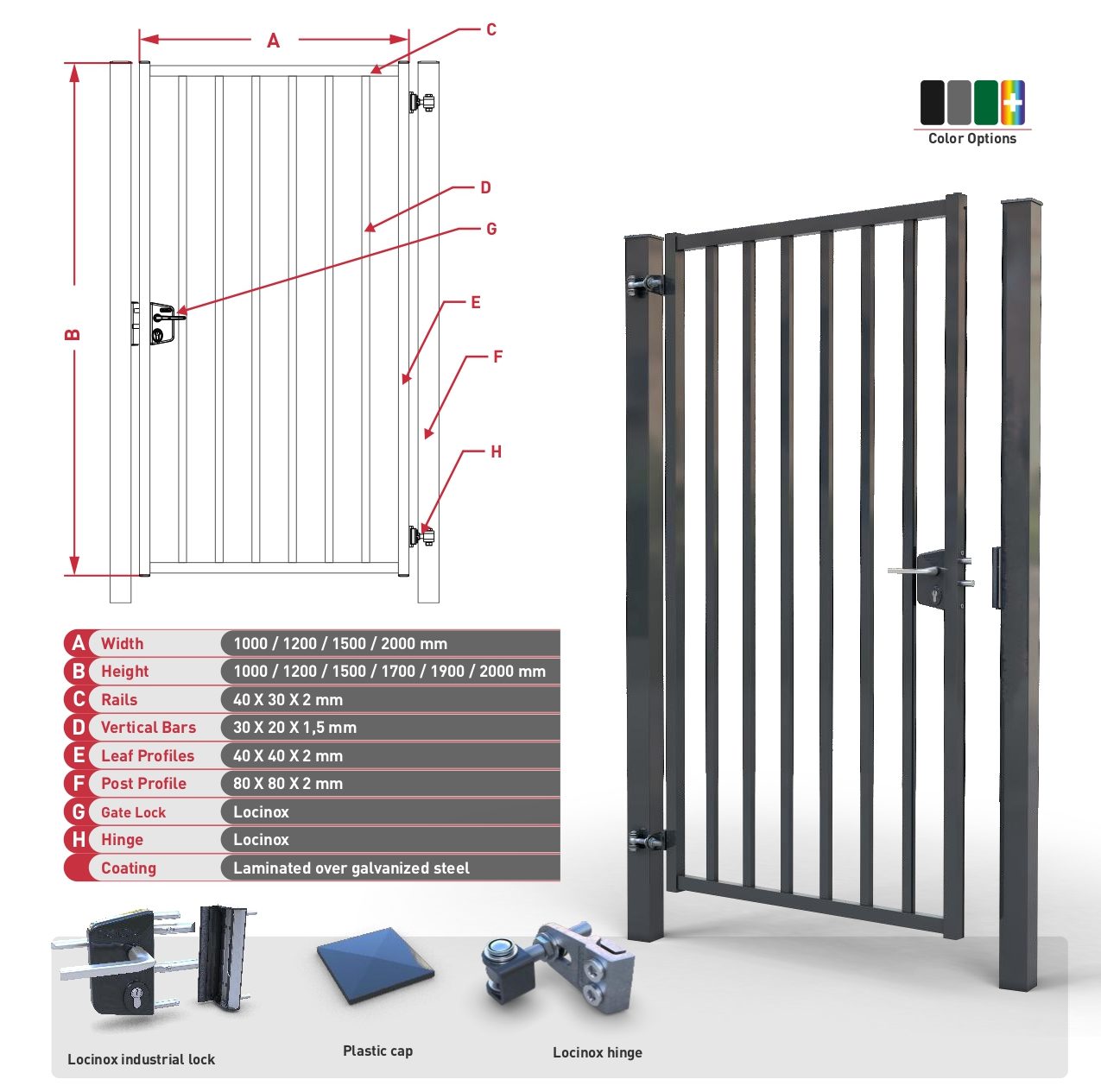 The Pro Single Leaf Gate isan aesthetic and durable gate system that offers an ideal security solution for confined spaces. Its modern design and robust construction make it suitable for a wide range of applications. It can be easily installed in security-sensitive areas such as industrial zones, residential properties, parks, gardens, and commercial premises.